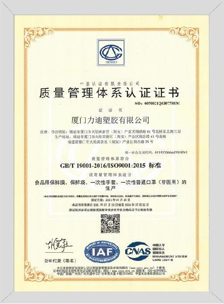 廈門力迪塑膠有限公司,成立于2005年是一家產業(yè)鏈完整、已有專業(yè)研發(fā)設計團隊、生產、銷售及品牌運營為一體的現(xiàn)代化企業(yè)。公司主營:一次性餐飲耗品與一次性醫(yī)療耗品;具體產品有:一次性PE手套、保鮮袋、保鮮膜、環(huán)保垃圾袋、纏繞膜、PS航空杯、紙杯、錫紙以及醫(yī)用防護口罩,醫(yī)用外科口罩,醫(yī)用創(chuàng)可貼,醫(yī)用敷貼,醫(yī)用手套等一次性耗品。車間按照國家“QS標準化進行規(guī)劃設計,運營面積達35000+平方米,擁有專業(yè)生產線400余條,月產量3900余噸。